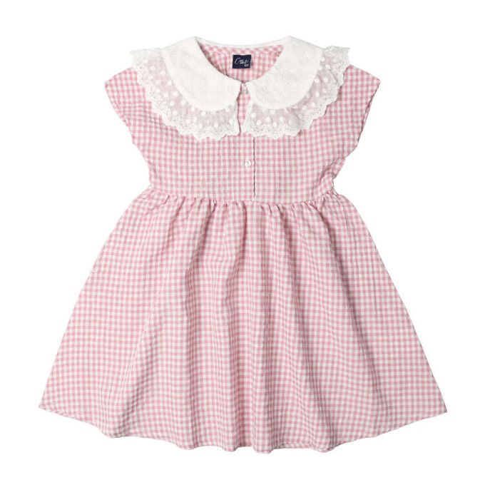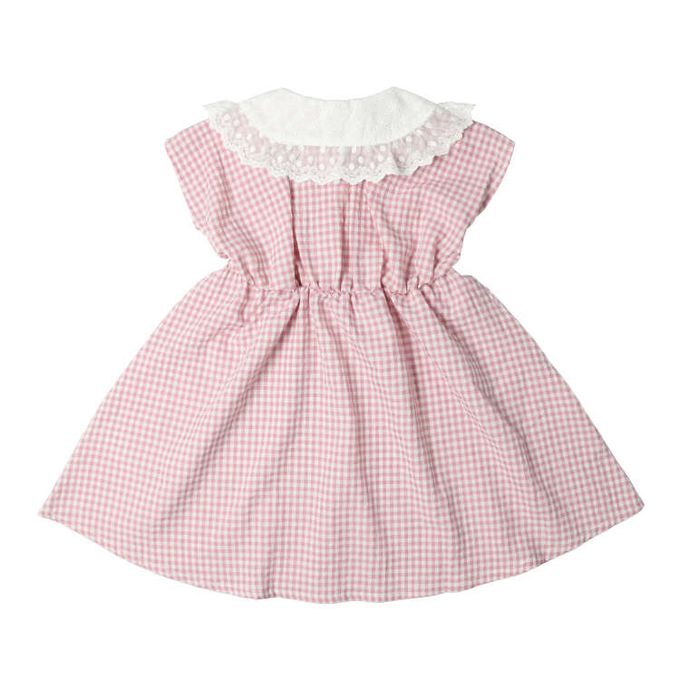 有著大領子、蕾絲領的甜美風小格紋洋裝