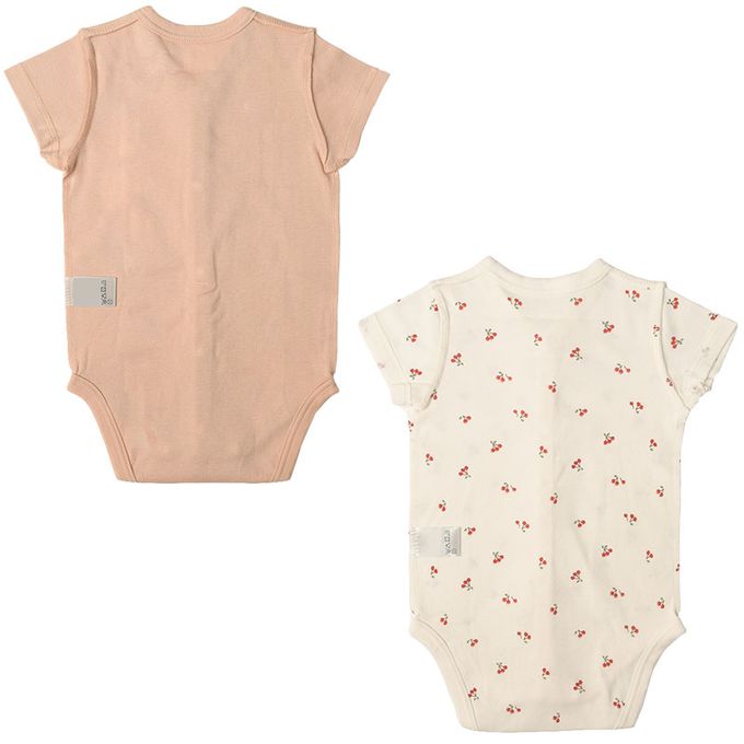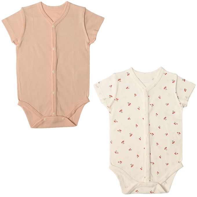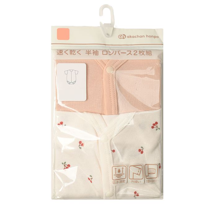akachan honpo - 短袖速乾前開式包屁衣-2件組 櫻桃-粉紅色