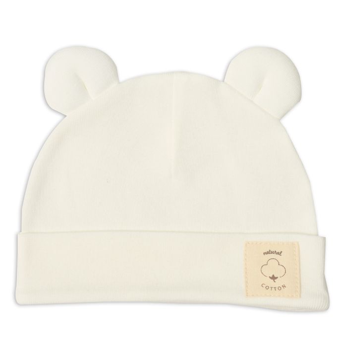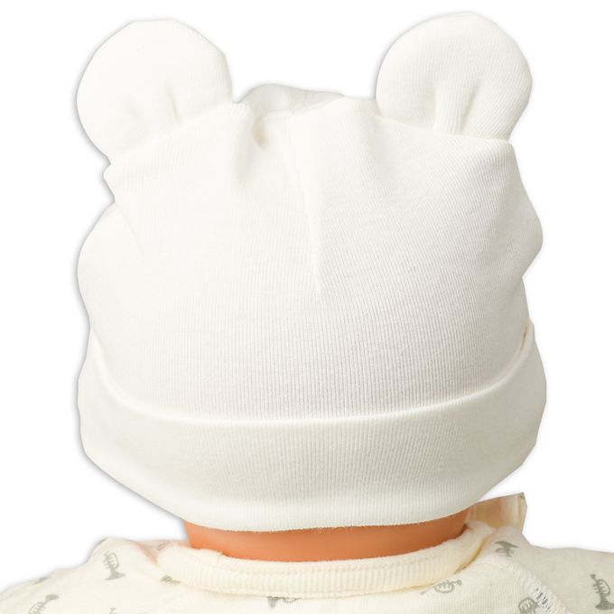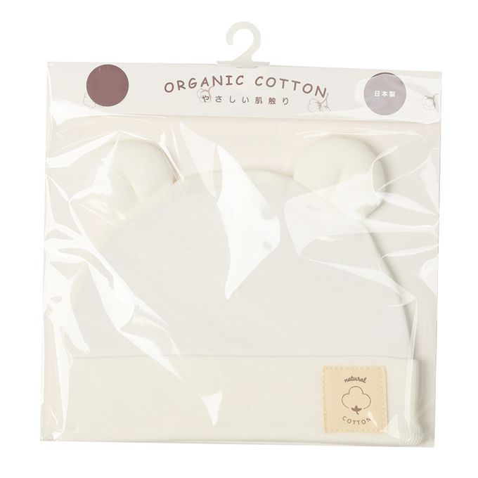 有機棉貝蕾帽-小熊-米白色 (36~40cm)-日本製
