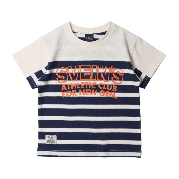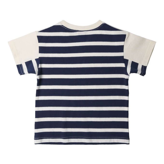 akachan honpo - 橫紋拼接T恤-淺藍色
