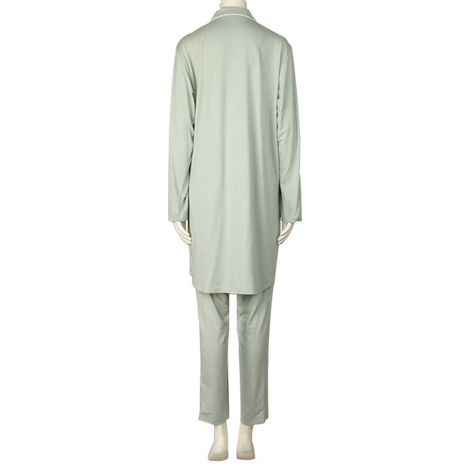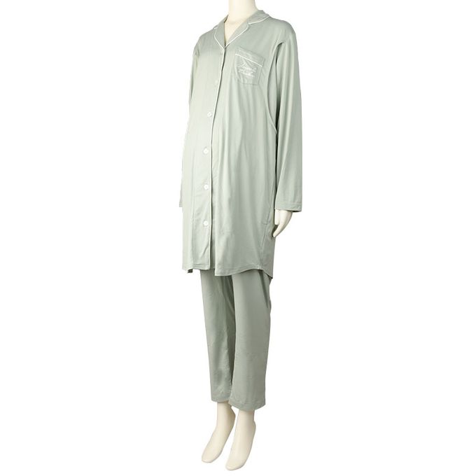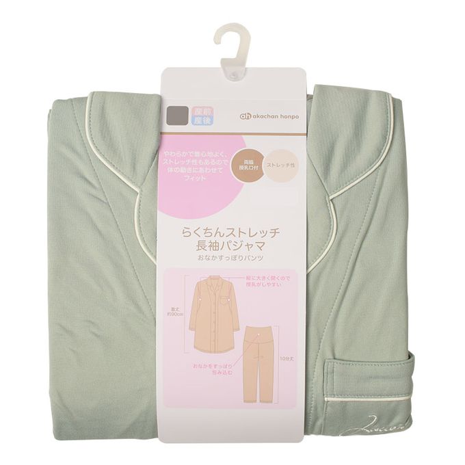 akachan honpo - 長袖舒適彈性家居服-腹部完整包覆褲 素面-綠色