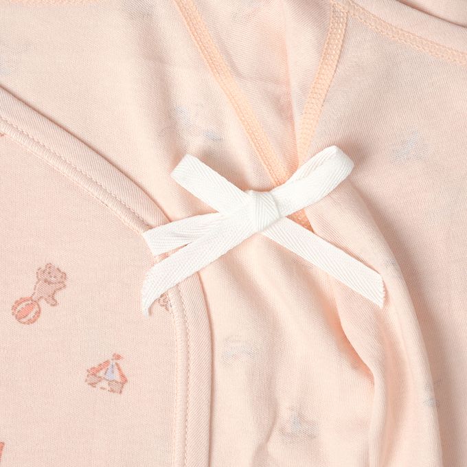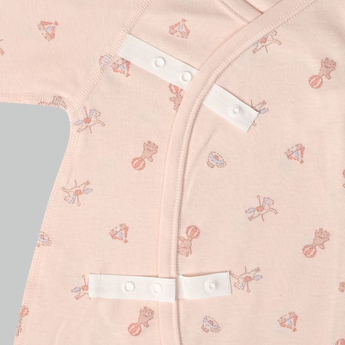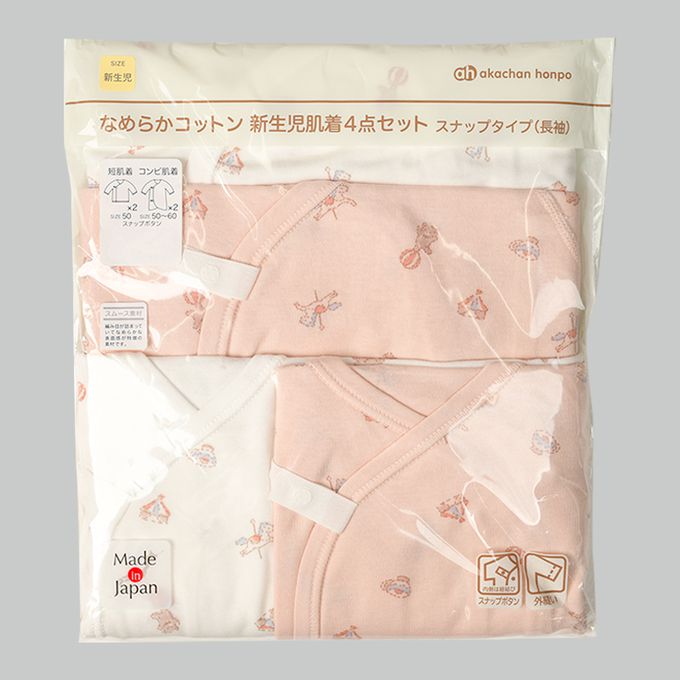 長袖新生兒內衣4件組-滑順棉 按扣款-粉紅色-日本製