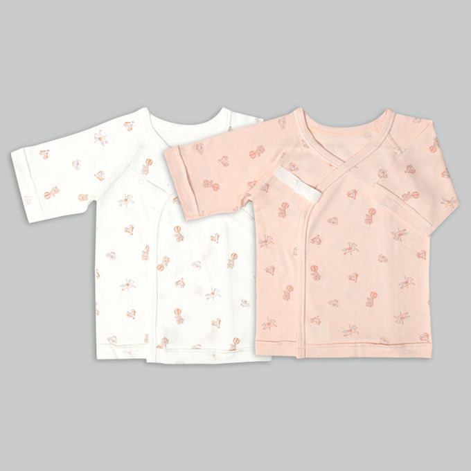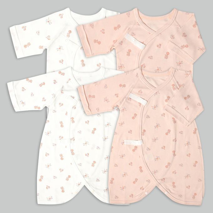 akachan honpo - 長袖新生兒內衣4件組-按扣款 毛圈布 草莓-粉紅色 (50~60cm)