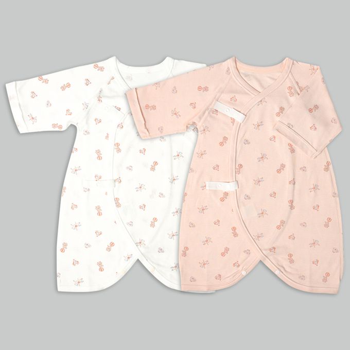 詳細尺寸:(約・ cm)= [長袖肚衣] 衣長33 胸圍46 袖口寬8.5 (適用身高50cm體重3kg) [長袖蝴蝶裝] 衣長46.5 胸圍48 袖口寬9.5 (身高50~60cm體重3~6kg)