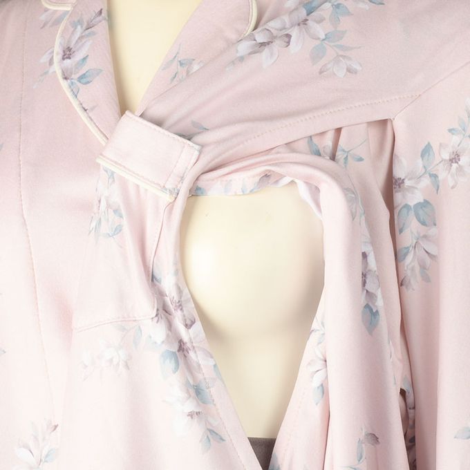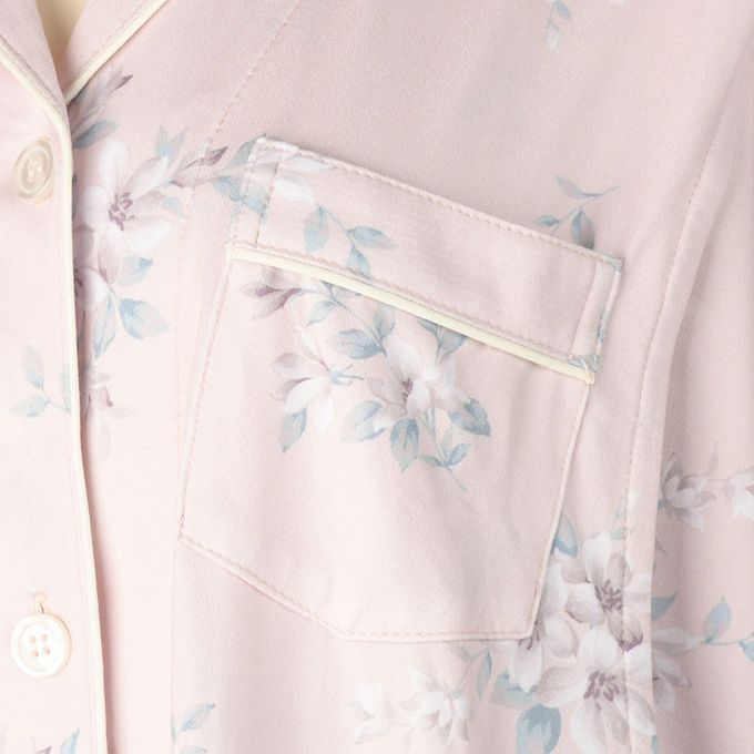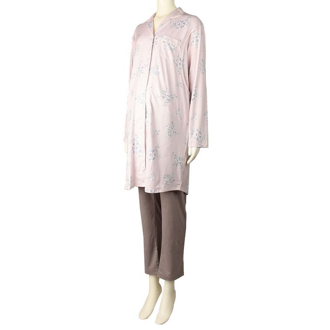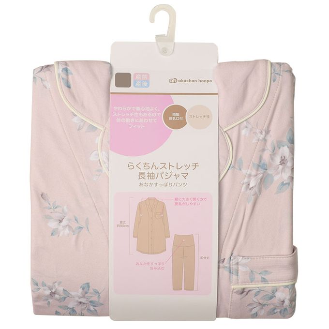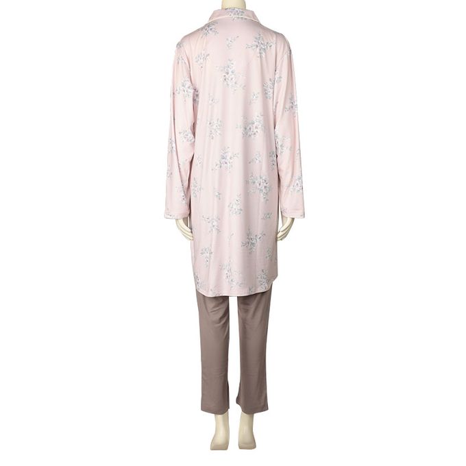 akachan honpo - 長袖舒適彈性家居服-腹部完整包覆褲 小花-粉紅色 (M~L)