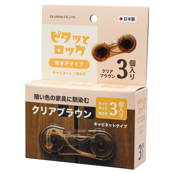 迅速鎖上安全防護鎖扣-櫥櫃用-咖啡色-日本製