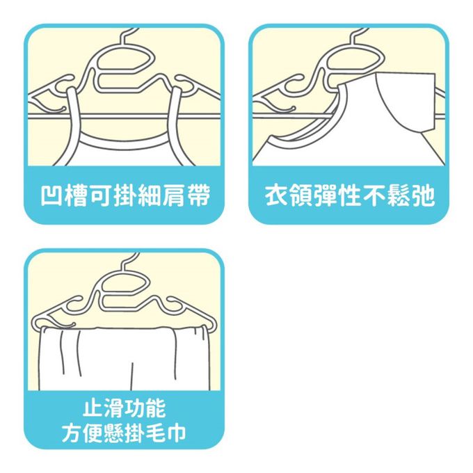 ●有肩帶的衣物也能輕鬆懸掛。●有止滑功能,方便懸掛毛巾和手帕。