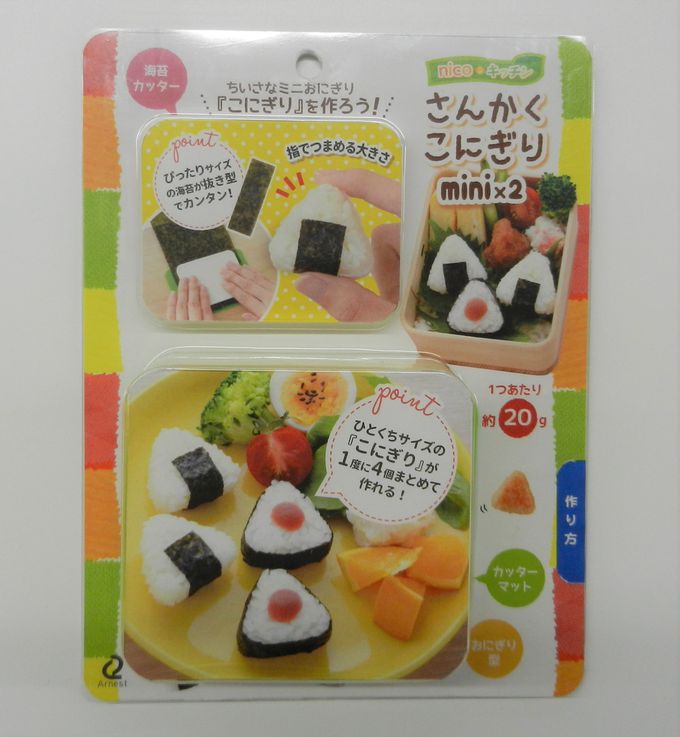 詳細尺寸:(約・ cm)=[飯糰壓模]約長9.5 ×寬10.5 ×高3.5 [海苔切割器]約長7 ×寬9 ×高1 [切割墊]約長8 ×寬12 ×厚0.2
