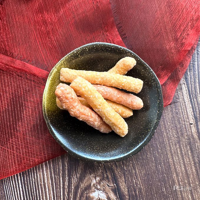 使用天然酵母經長時間發酵後油炸製作