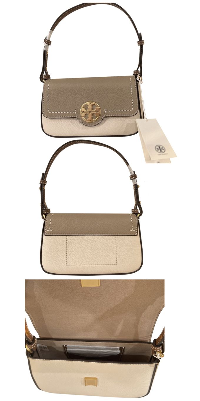 拼接皮革翻蓋斜背包 (奶茶撞色白)