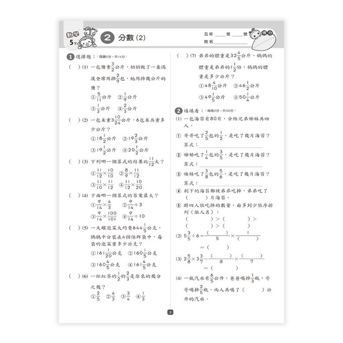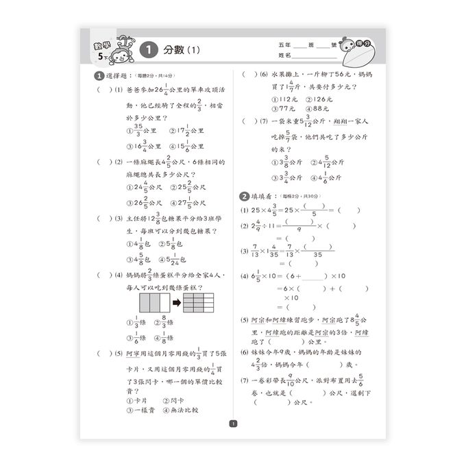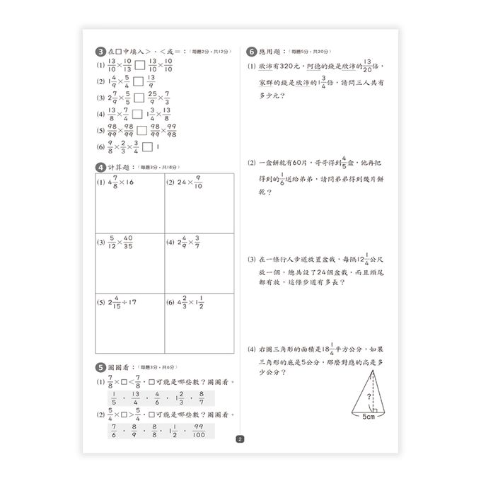 測驗卷由專業教師團隊依108課綱編寫,適用各家版本,題型難易適中,幫助孩 子加強實力,培養數學計算能力及分析題意解題技巧,奠定扎實數學基礎實力,附詳細參考解答,家長或補習班可輕易檢視孩子學習成果。