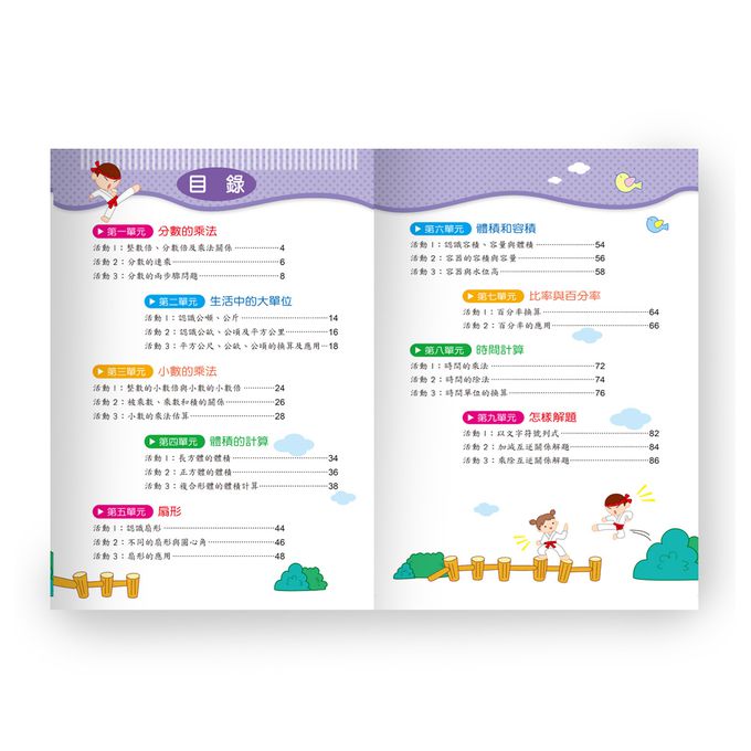 本書依照教育部頒布的最新課程綱要編寫,融合各家版本教材之精華,有助於提升國小學童之數學能力運算能力。各單元內容包含:「老師說」、「祕笈」及「學生做」,先提出問題檢測學童之能力,再列出該單元之重要概念及解題技巧,接著再次練習解題,加深學習印象。另外還有「綜和練習」和「自我挑戰」的練習題目,讓學童在練習中不斷進步,大大強化數學實力!