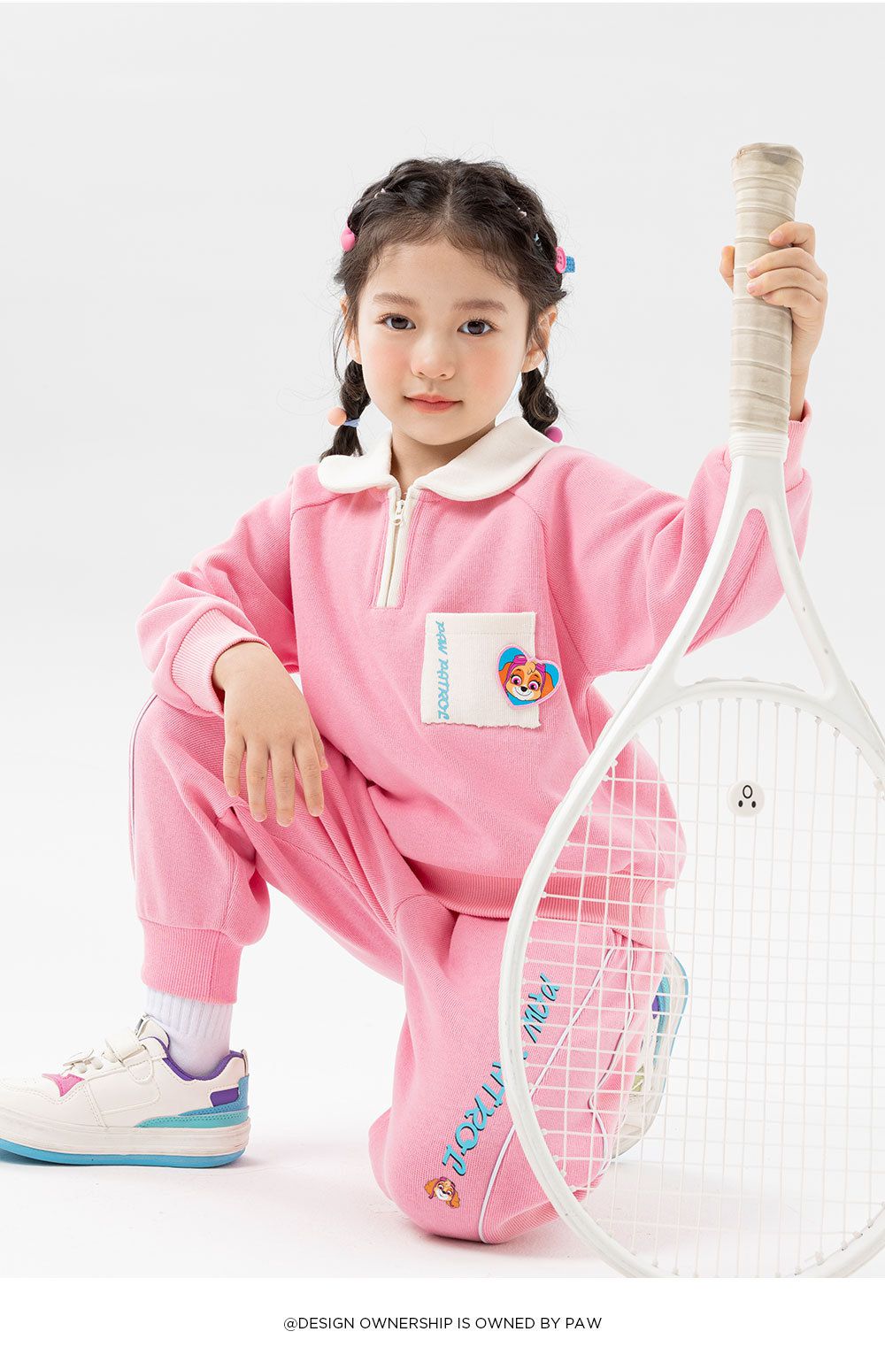 卡通汪汪隊學院風運動長袖套裝-卡通人物天天-粉色