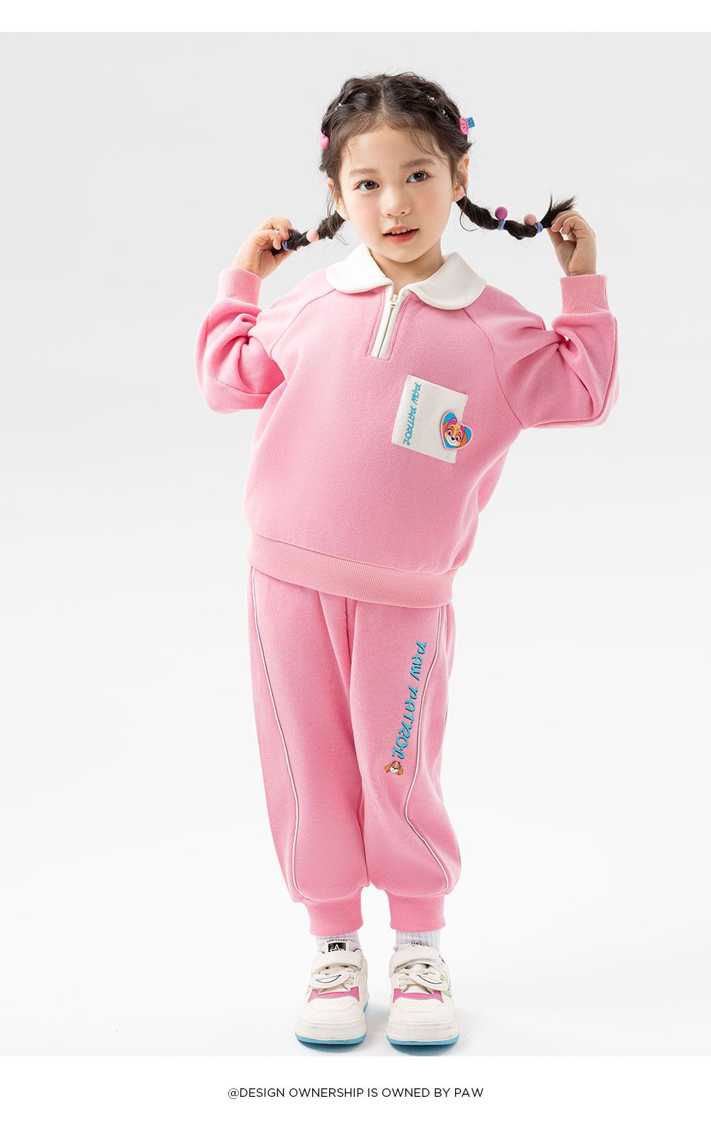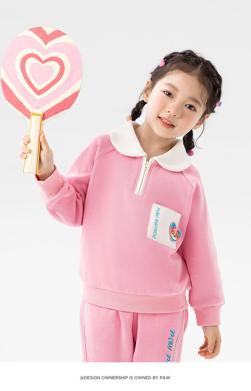人氣卡通 - 卡通汪汪隊學院風運動長袖套裝-卡通人物天天-粉色