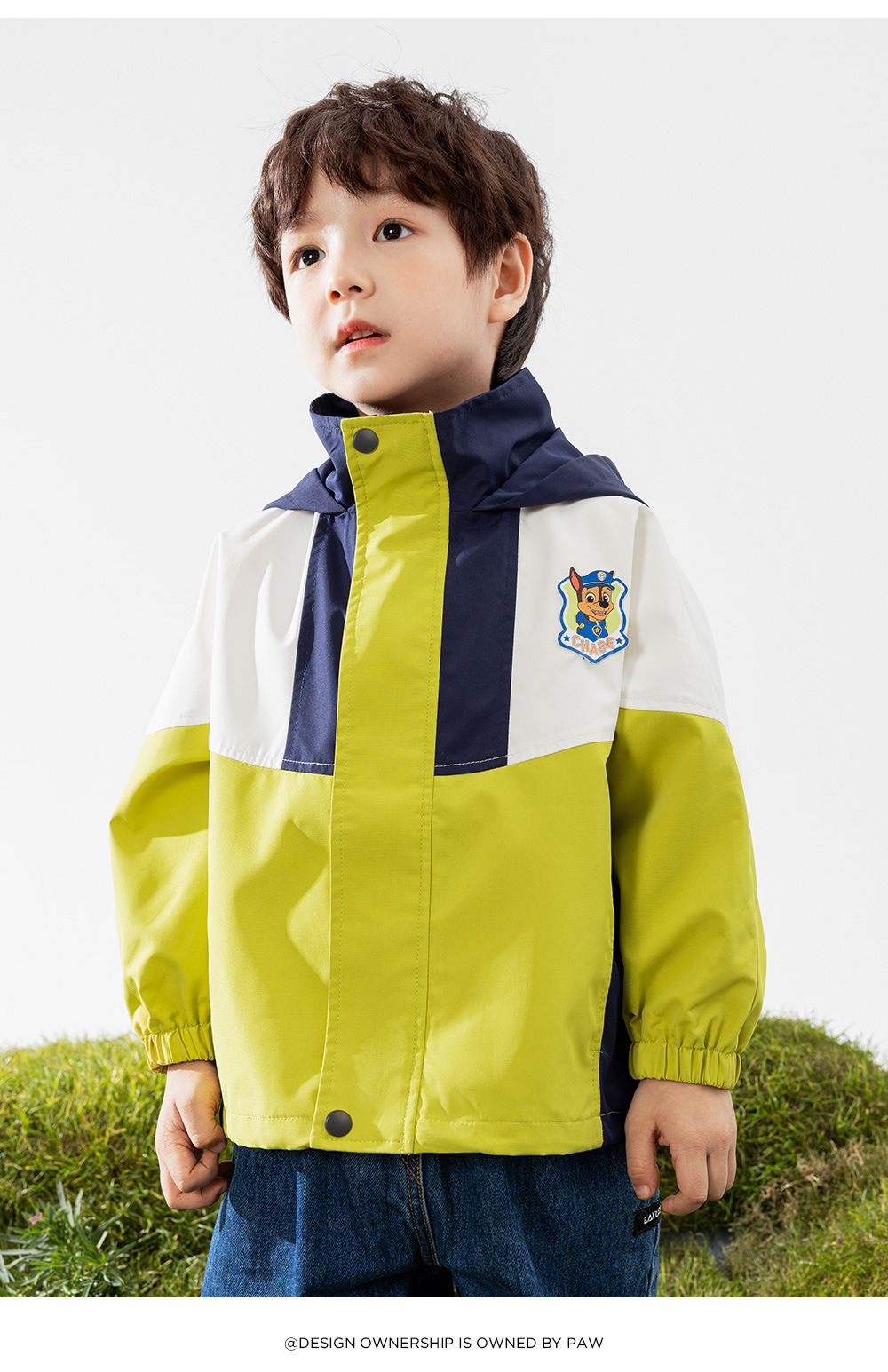卡通汪汪隊薄款防風防雨衝鋒外套-卡通人物阿奇-綠色