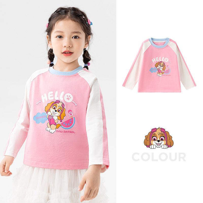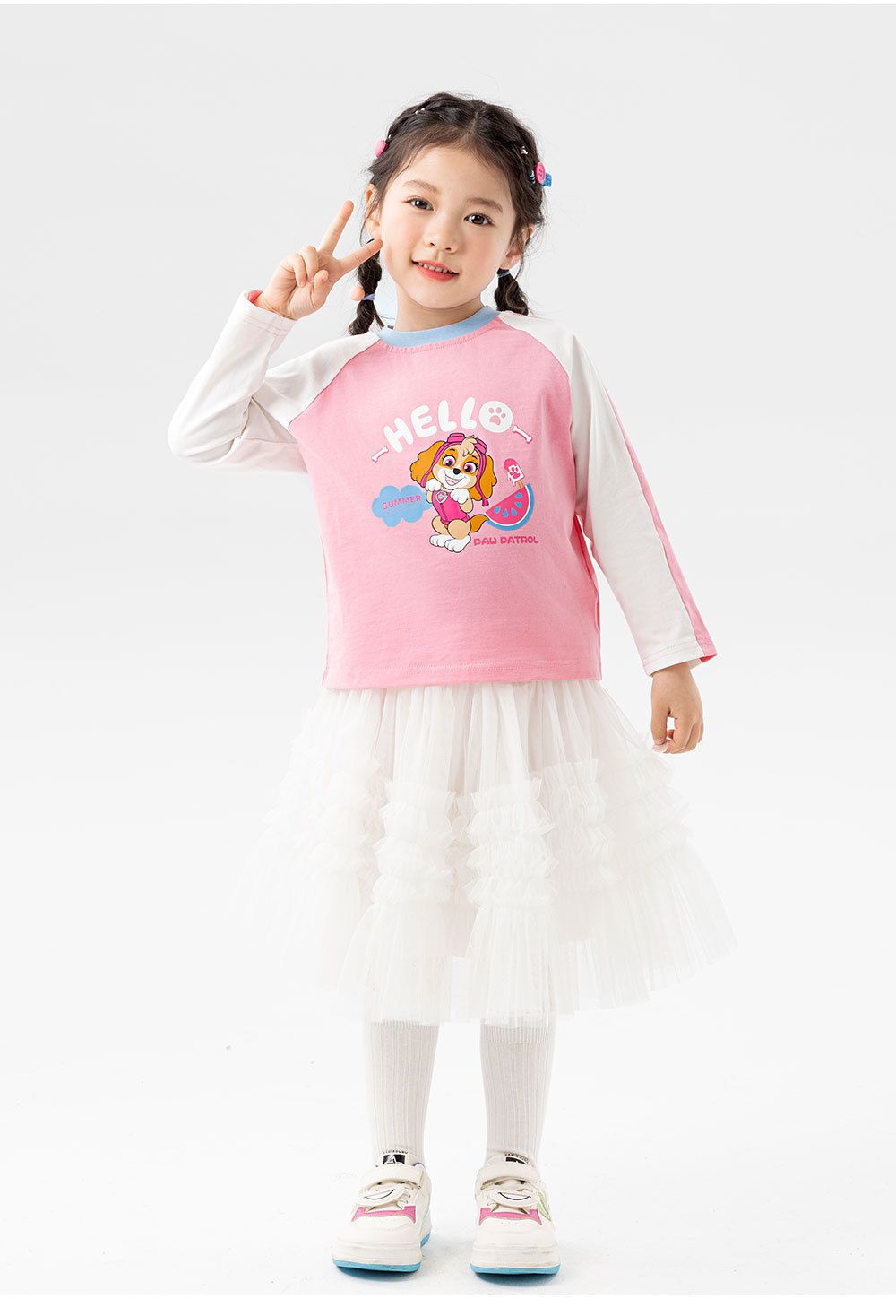 人氣卡通 - 卡通汪汪隊純棉圓領長袖上衣-卡通人物天天-粉+白+藍