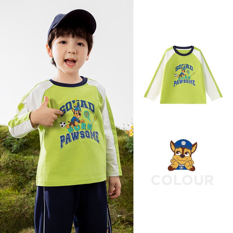 卡通汪汪隊純棉圓領長袖上衣-卡通人物阿奇-綠色