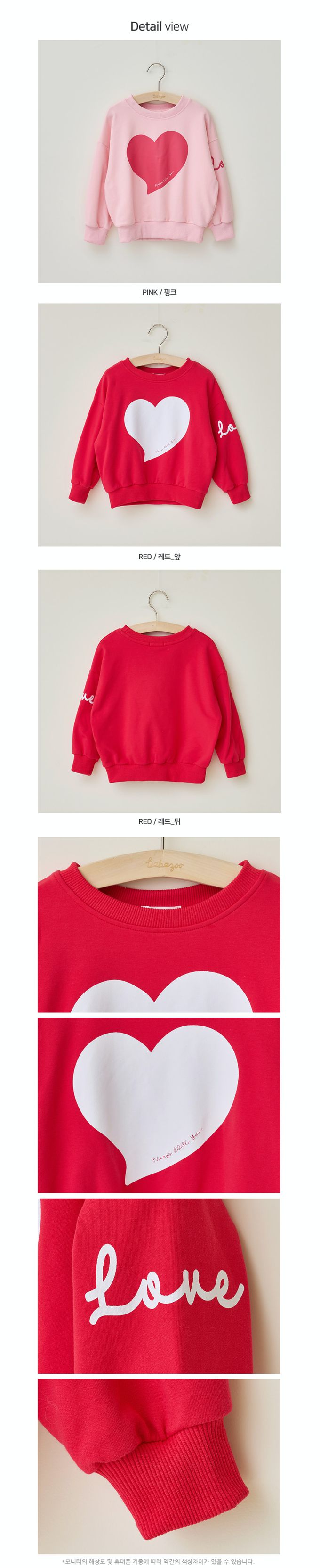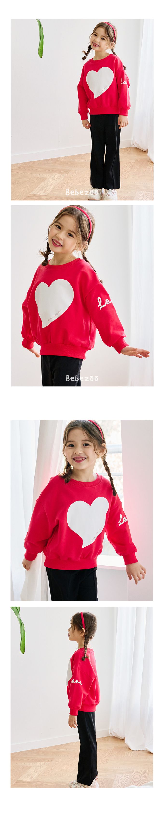 韓國 Bebezoo - LOVE大愛心印圓領大學T-粉