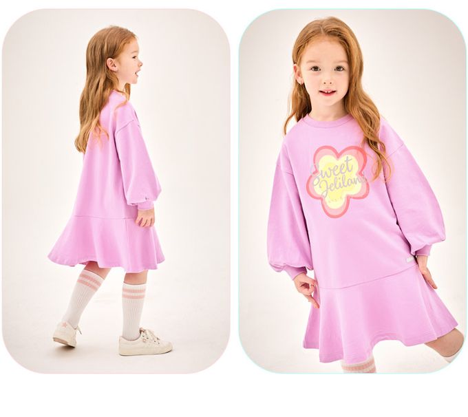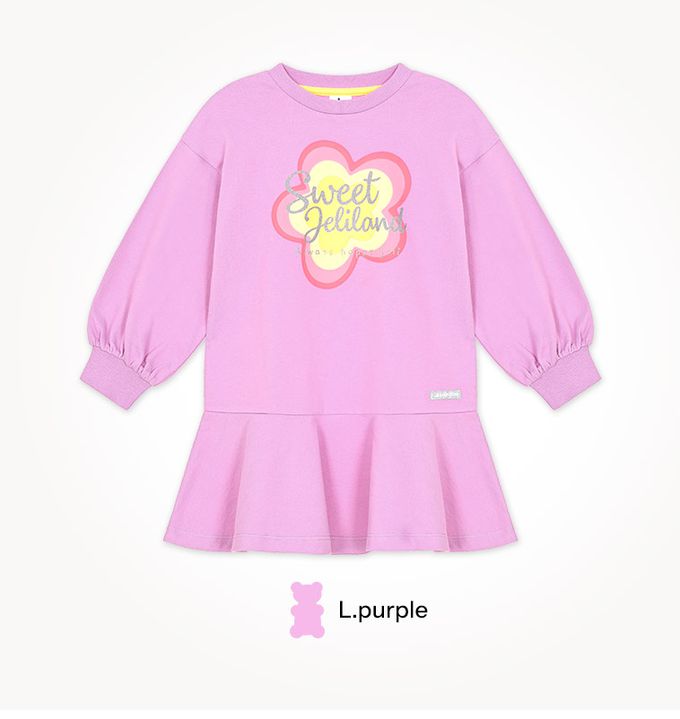 韓國 Jelispoon - 花印Jeliland長袖連身洋裝-粉紫