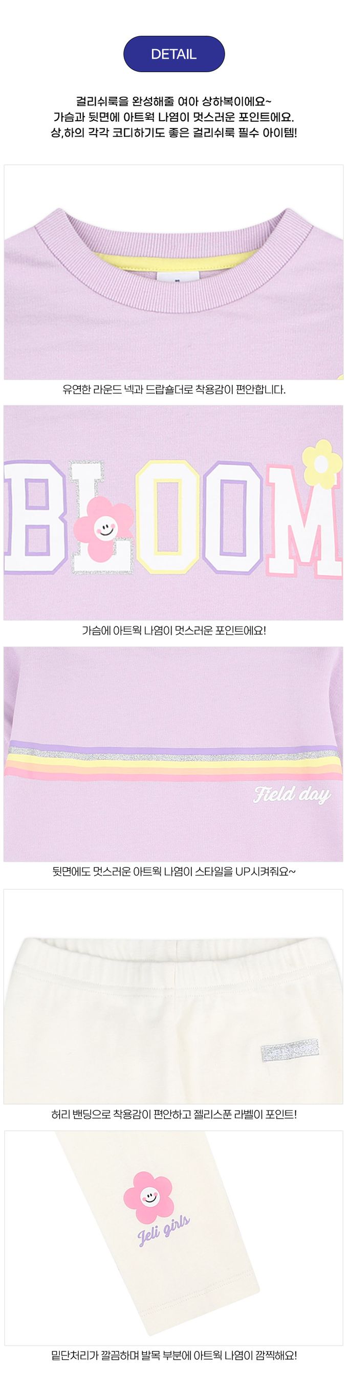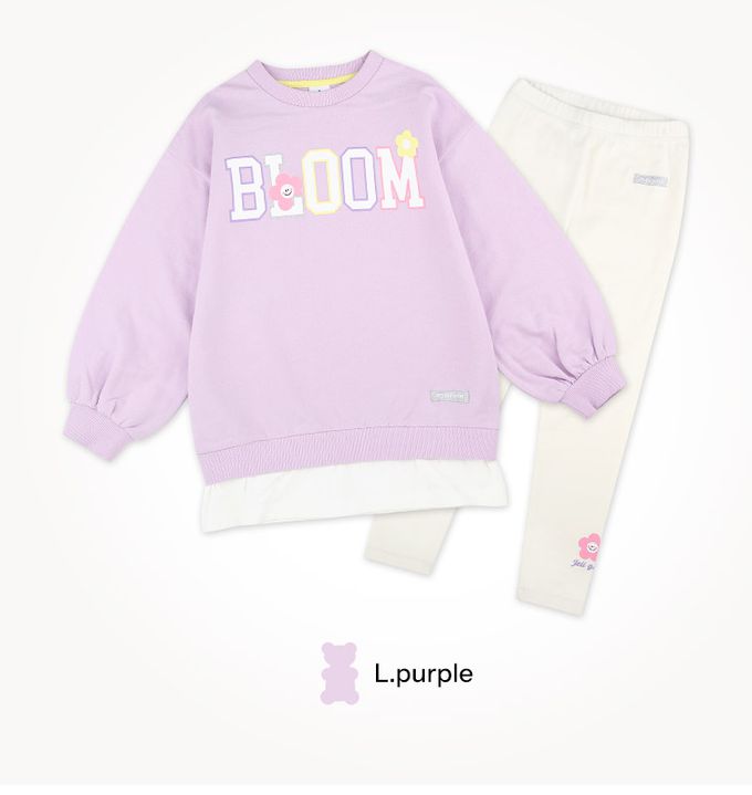 韓國 Jelispoon - BLOOM花花長版內搭褲套裝-淺紫X米白