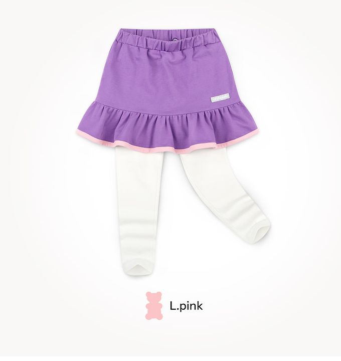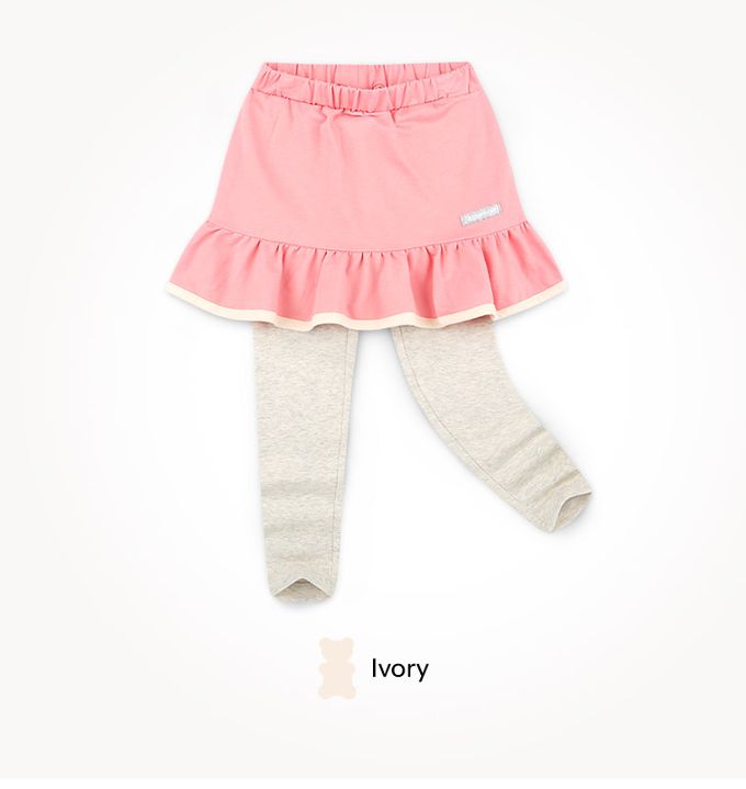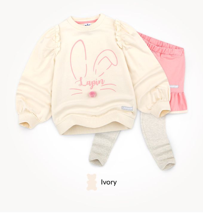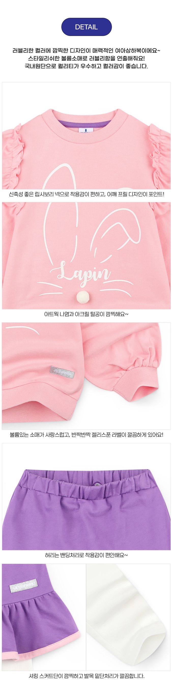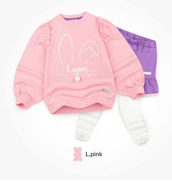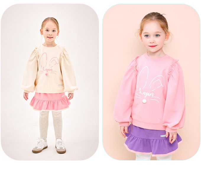 韓國 Jelispoon - 可愛兔子毛球點綴內搭褲裙套裝-米X粉