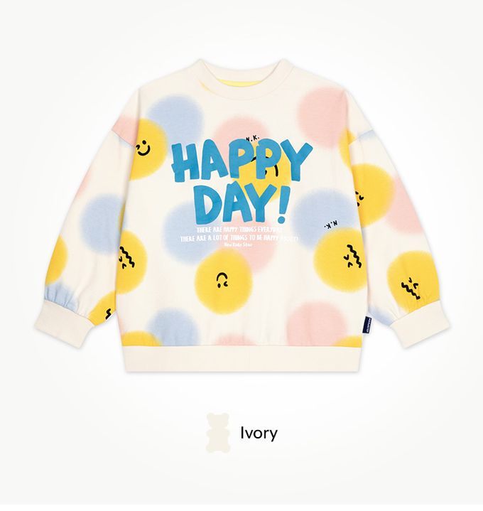 韓國 Jelispoon - HAPPY DAY圓形印長袖上衣-象牙白