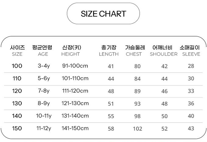 尺寸從90-150公分都有,大小孩和小寶貝都可以穿!