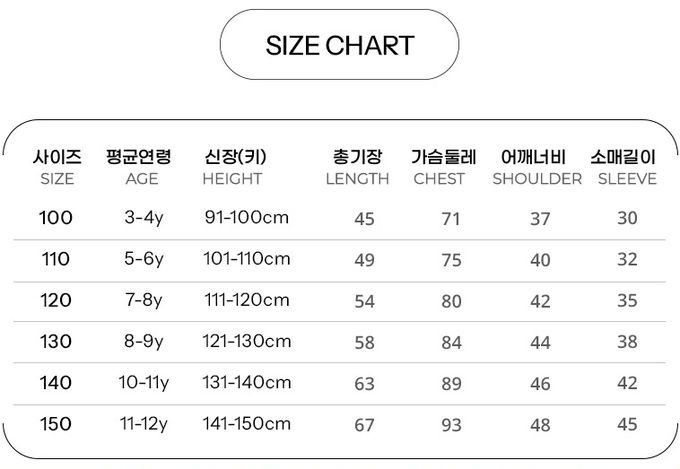 尺寸從90-150公分都有,大小孩和小寶貝都可以穿!