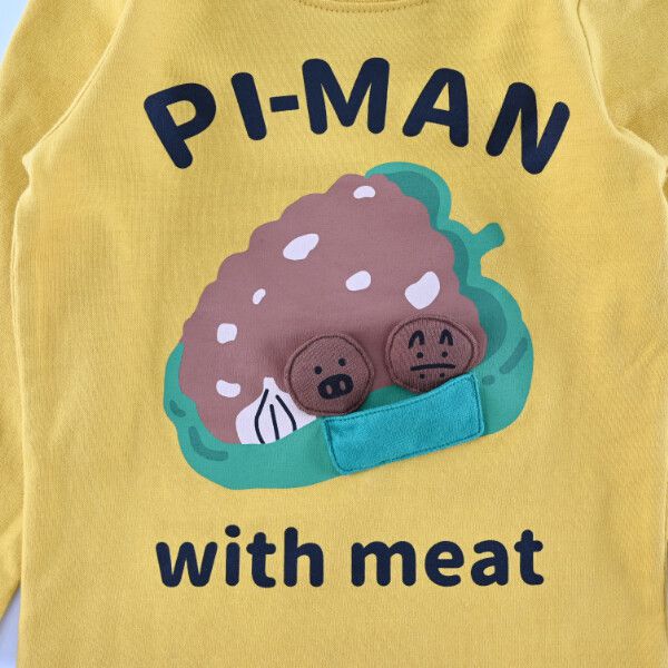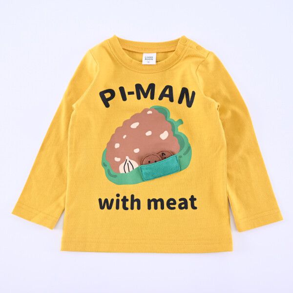 日本 Baby Room - 立體翻翻樂長袖上衣-漢堡X黑豬-暖黃