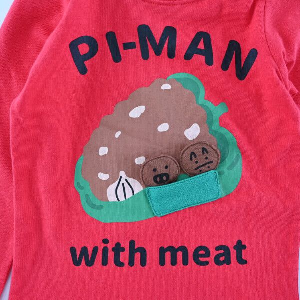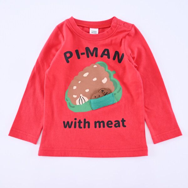 日本 Baby Room - 立體翻翻樂長袖上衣-漢堡X黑豬-亮紅