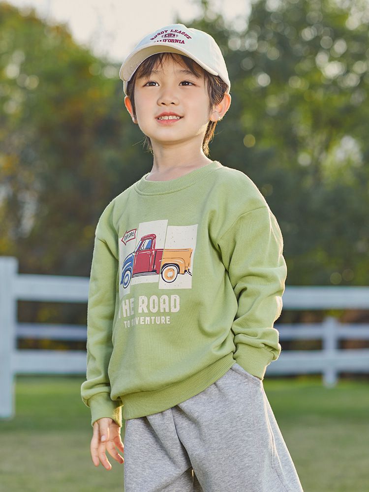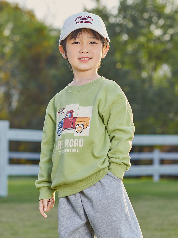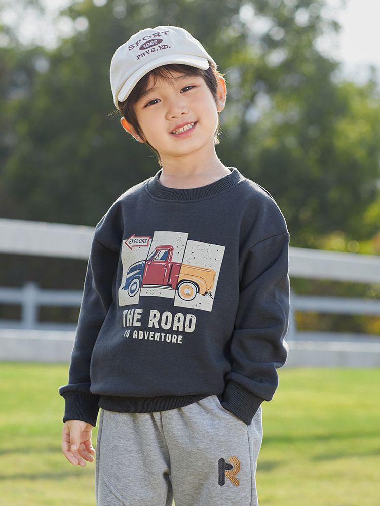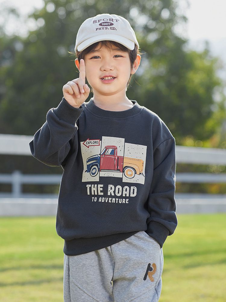 BOMI - 圓領長袖大學T-多彩恐龍-藍+白