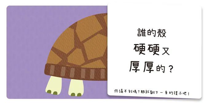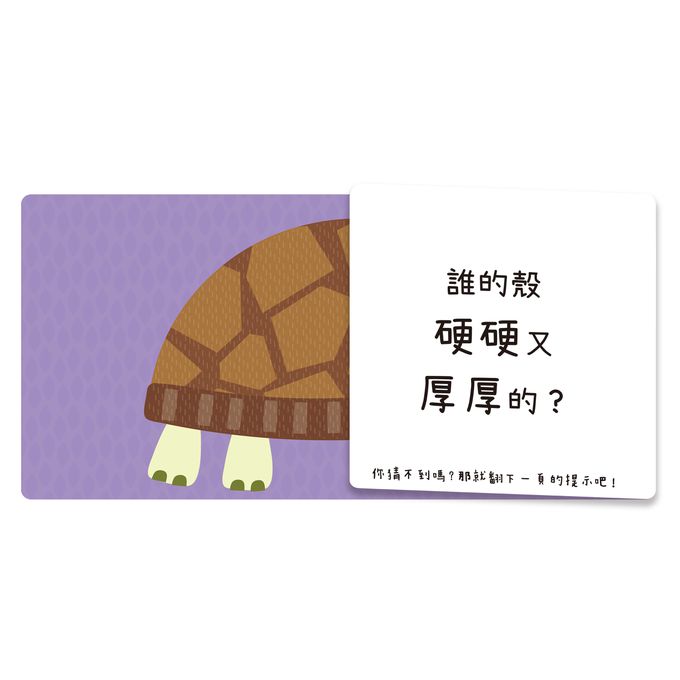 本書搭配多個折頁,讓孩子看到動物其中一個特徵後,可以一邊思考、一邊動手打開所有的折頁,揭曉答案!體驗互動式學習的樂趣,也是家長陪孩子學習認知的最佳教材。