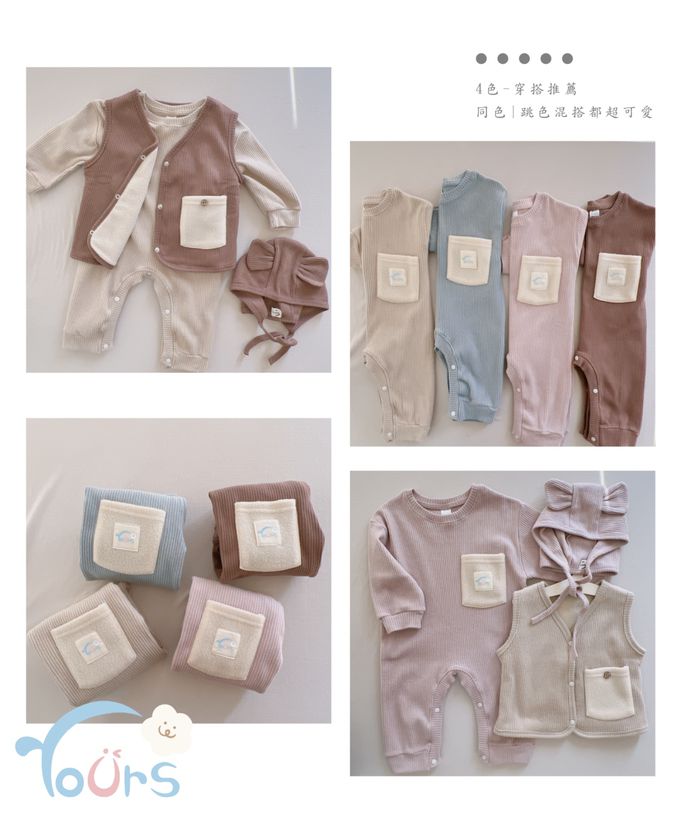 -新生兒親膚衣物(嬰幼兒包巾與背巾、包屁衣、學習褲、紗布衣等)。