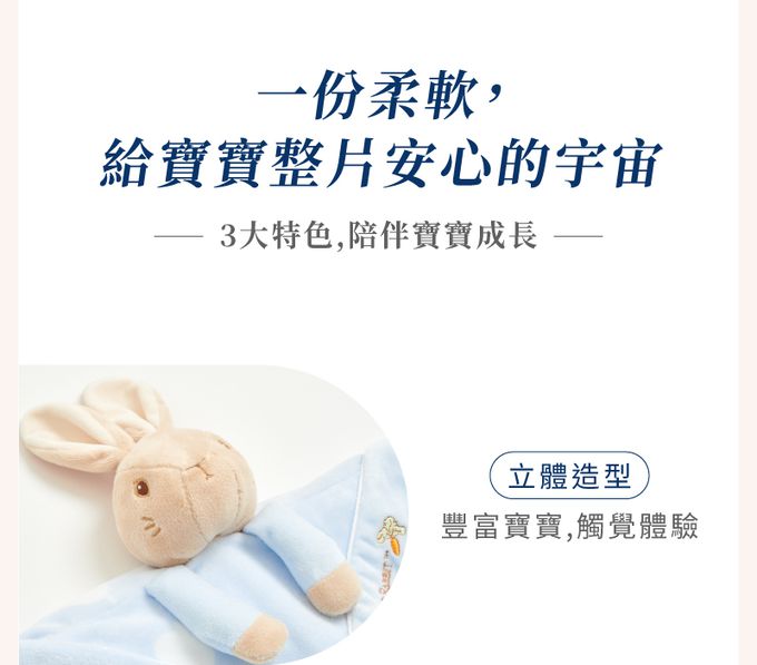 3.兼具安撫與蓋毯功能,滿足寶寶好奇心,隨時提供最貼心的呵護。