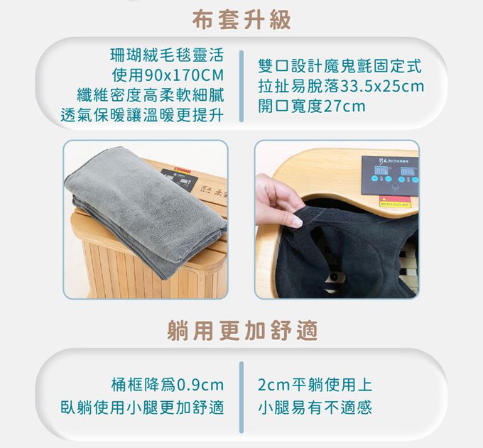 • 上掀式座板,足、腿、坐、躺,一機多用