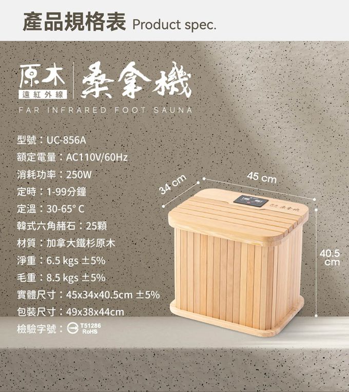 • 品名:遠紅外線原木桑拿機 UC-856A 多功能小型款