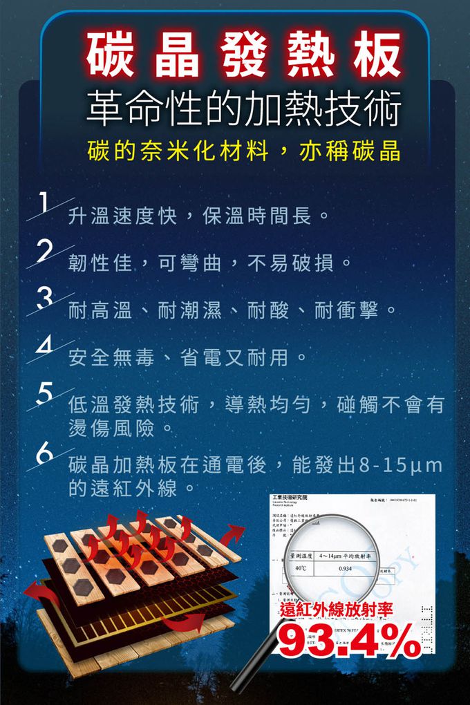 • 工研院檢測,遠紅外線放射率達93.4%