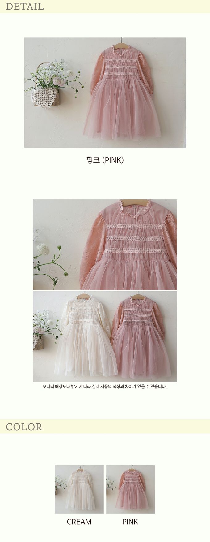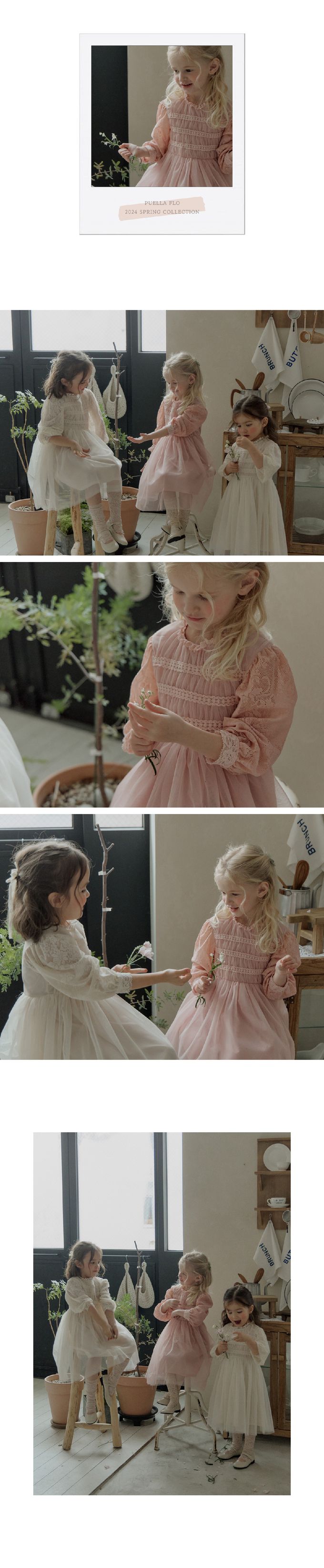 韓國 PuellaFLO - 花童洋裝!雅緻蕾絲層次網紗連身洋裝-粉
