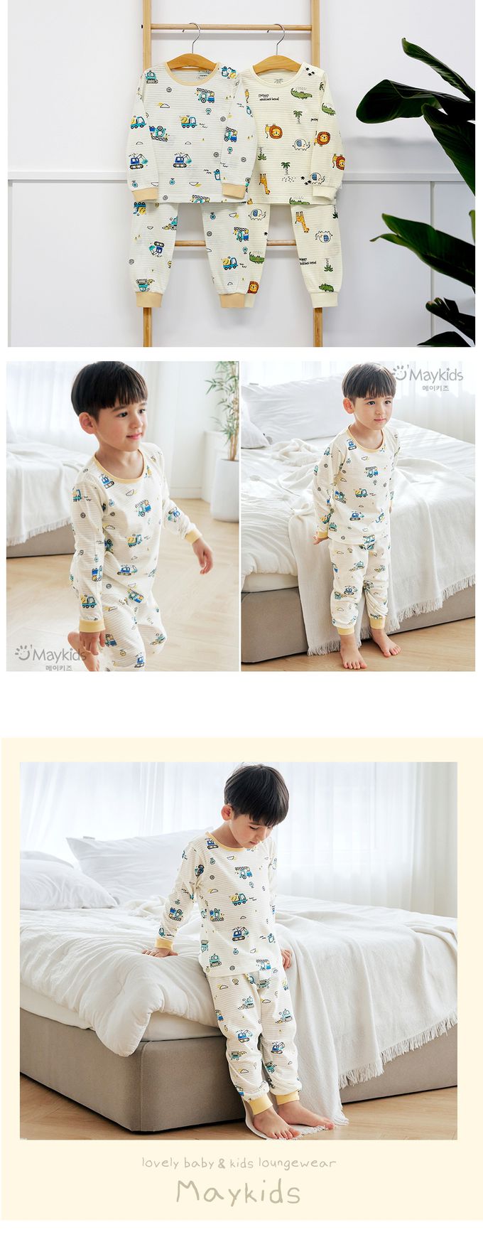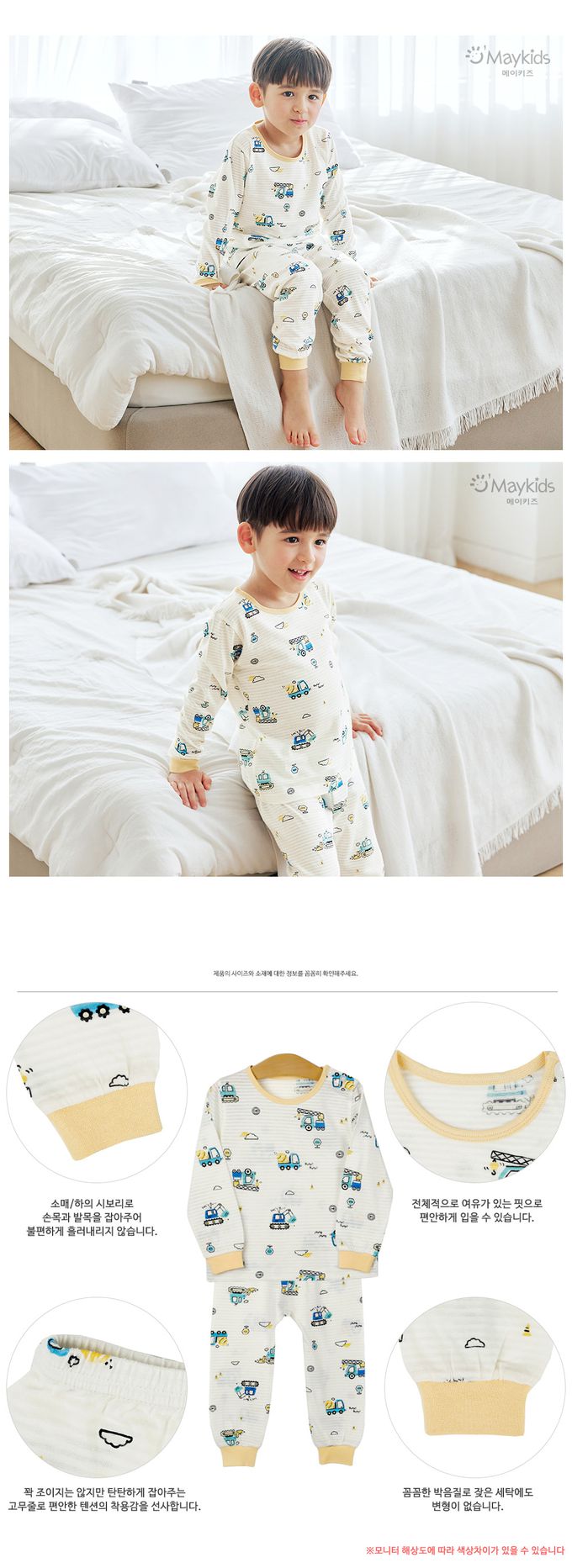 韓國 Maykids - 透氣條紋提花棉長袖家居服-施工工程車