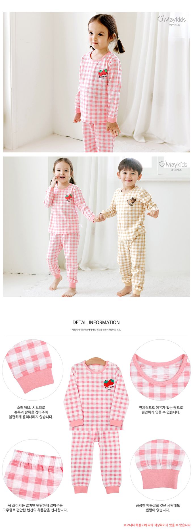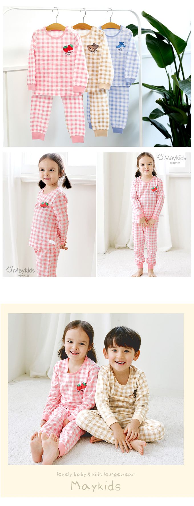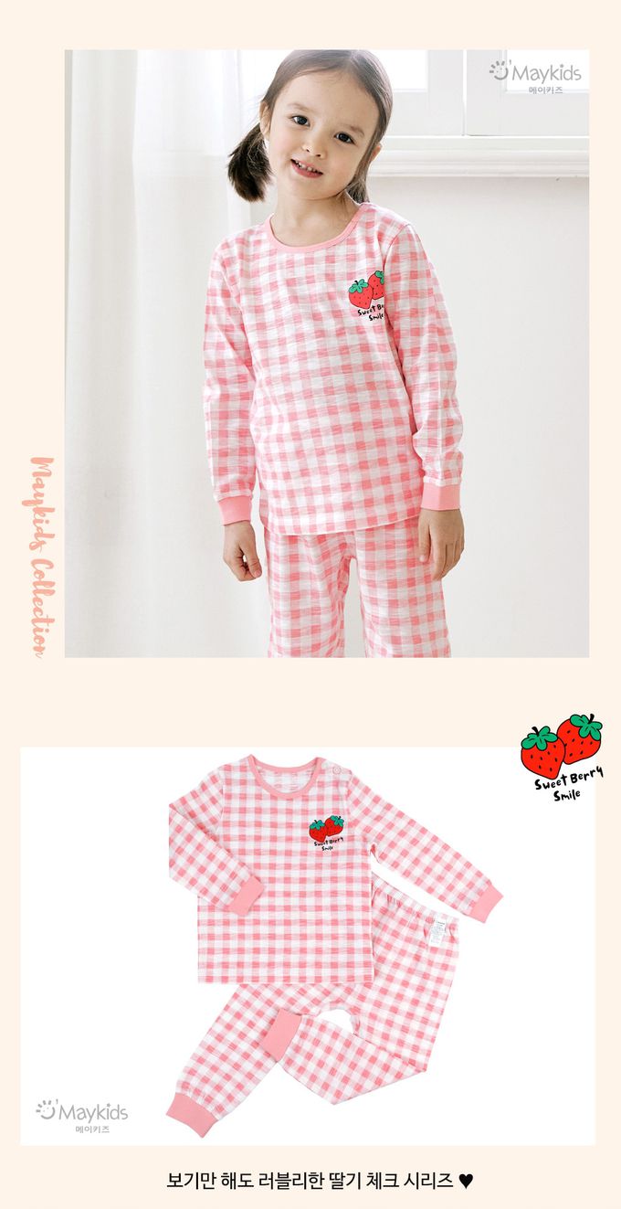 韓國 Maykids - 輕薄細柔棉長袖家居服-格紋草莓