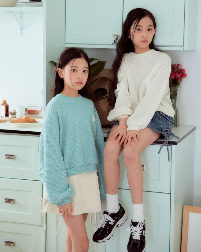 韓國 sm2 - 小雛菊刺繡裝飾針織長袖上衣-薄荷藍綠