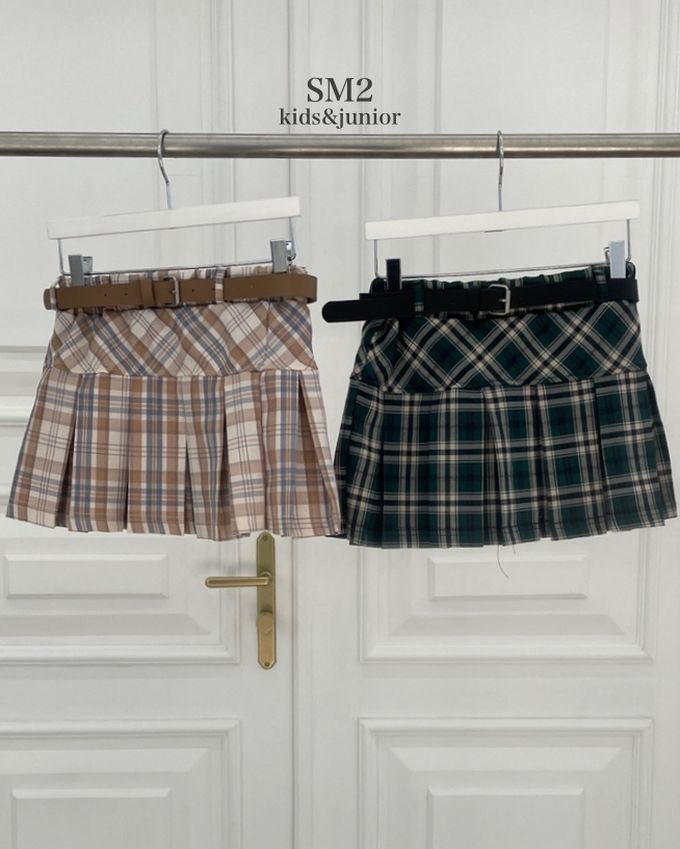 韓國 sm2 - 鬆緊腰腰帶格紋打褶褲裙-綠