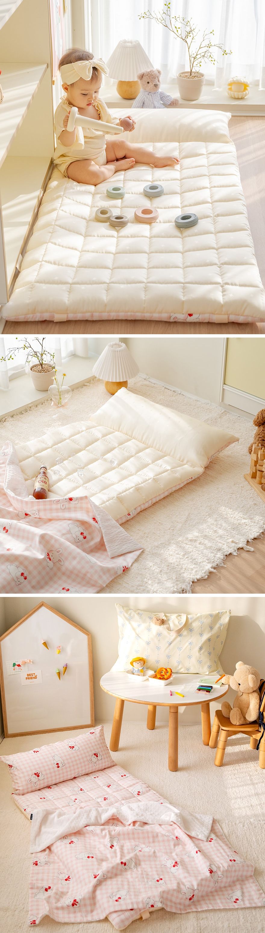 這款有利用聚酯纖維填充,達到蓬鬆輕量的加厚效果!睡在上面不會直接磕到地板~
