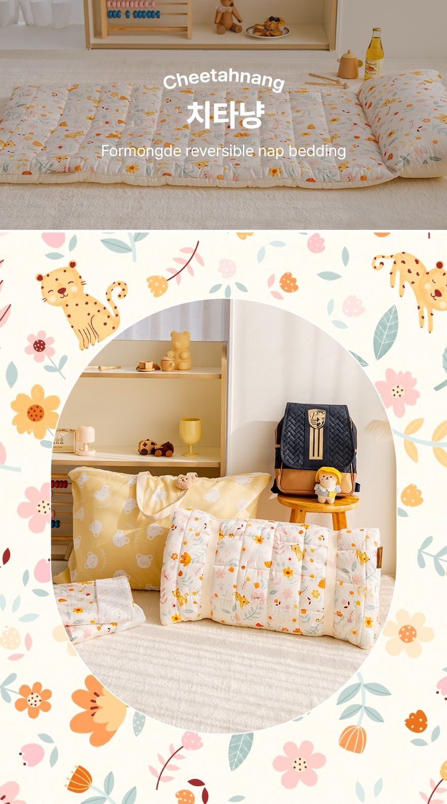 韓國 Formongde - 高級純棉/涼感嫘縈四季用5cm厚墊睡袋組-花叢玩耍花豹