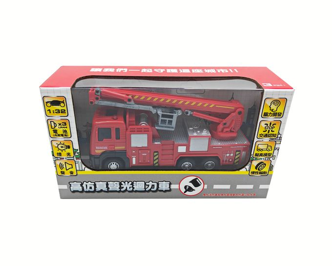 • 品名:高仿真聲光迴力車系列-消防雲梯車