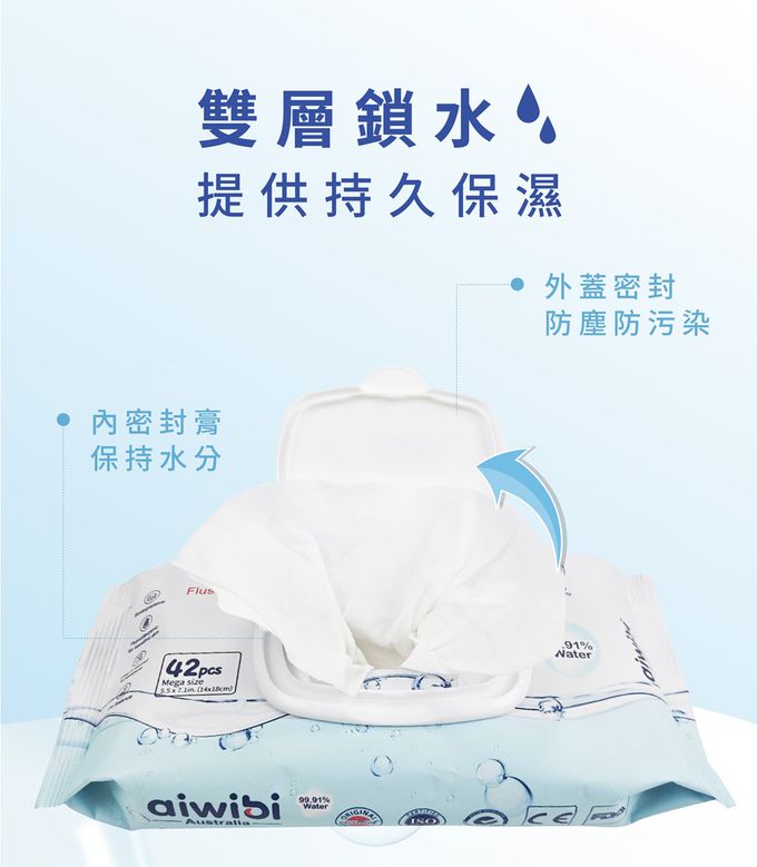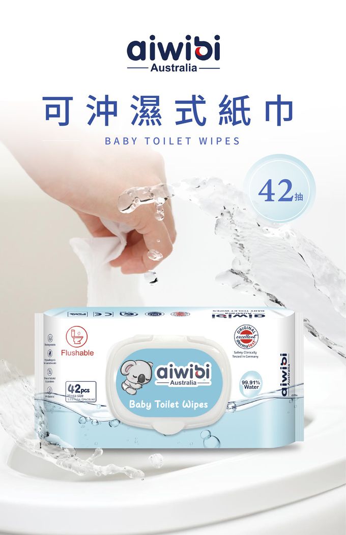 【Aiwibi 澳洲品牌】Aiwibi愛薇彼 可沖濕式紙巾-42抽x9包/箱