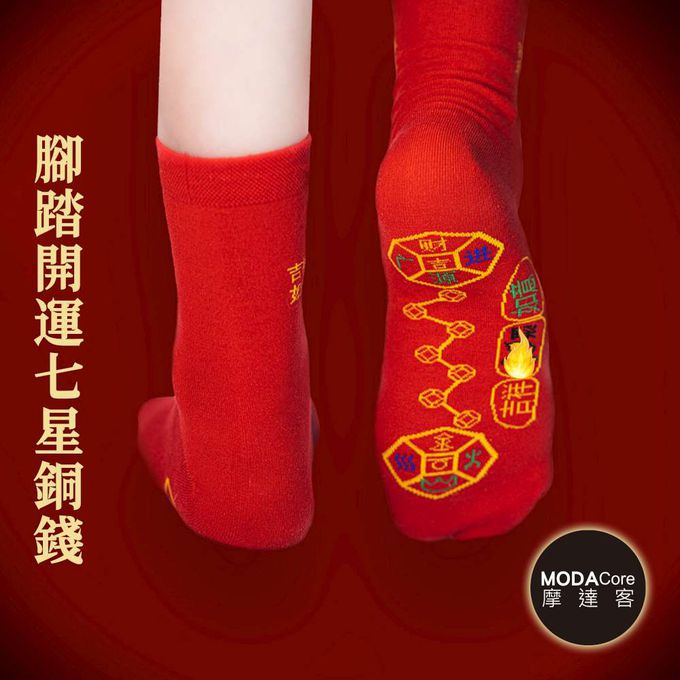 品名:摩達客◉招財開運小人退散腳踏七星襪(三雙優惠組)轉運吉祥紅襪談生意打麻將必備中性襪男女均可穿