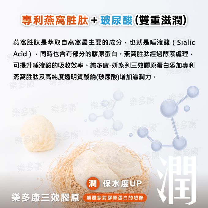 潤:專利燕窩胜肽及玻尿酸-肌膚保水度UP!