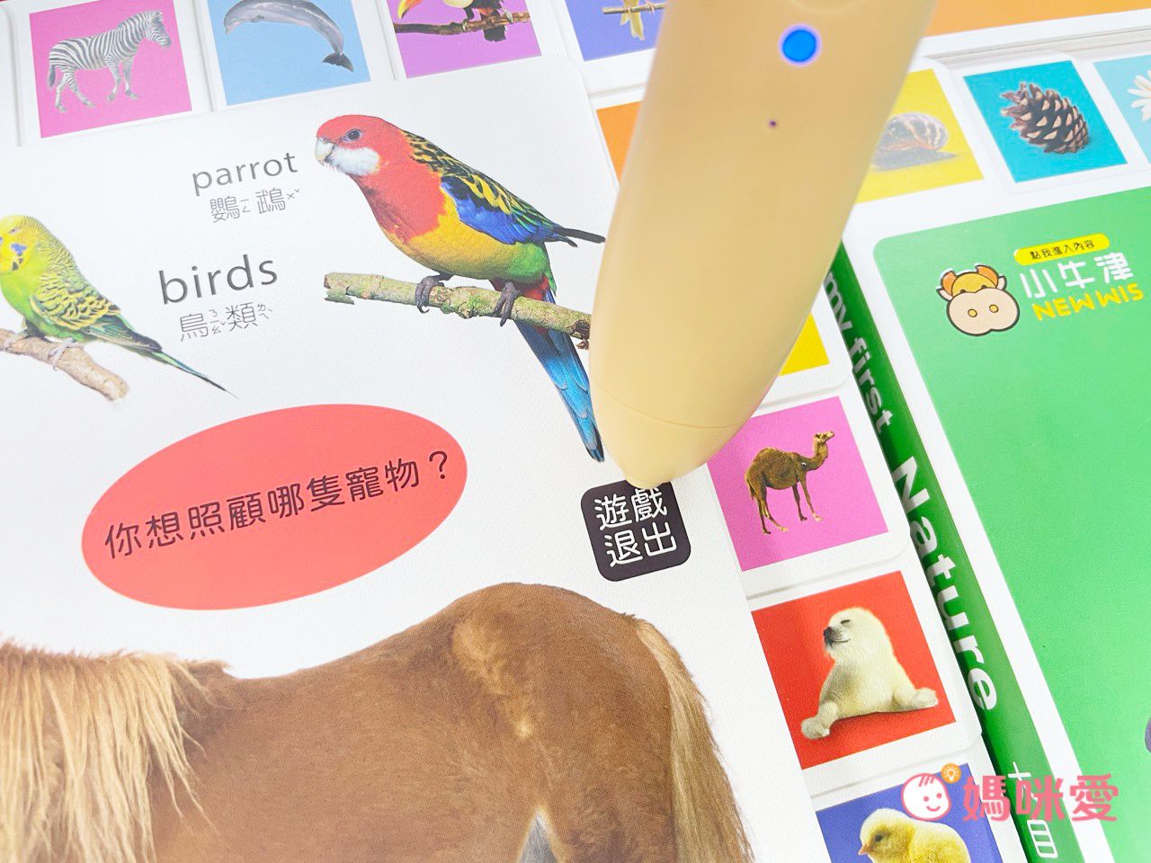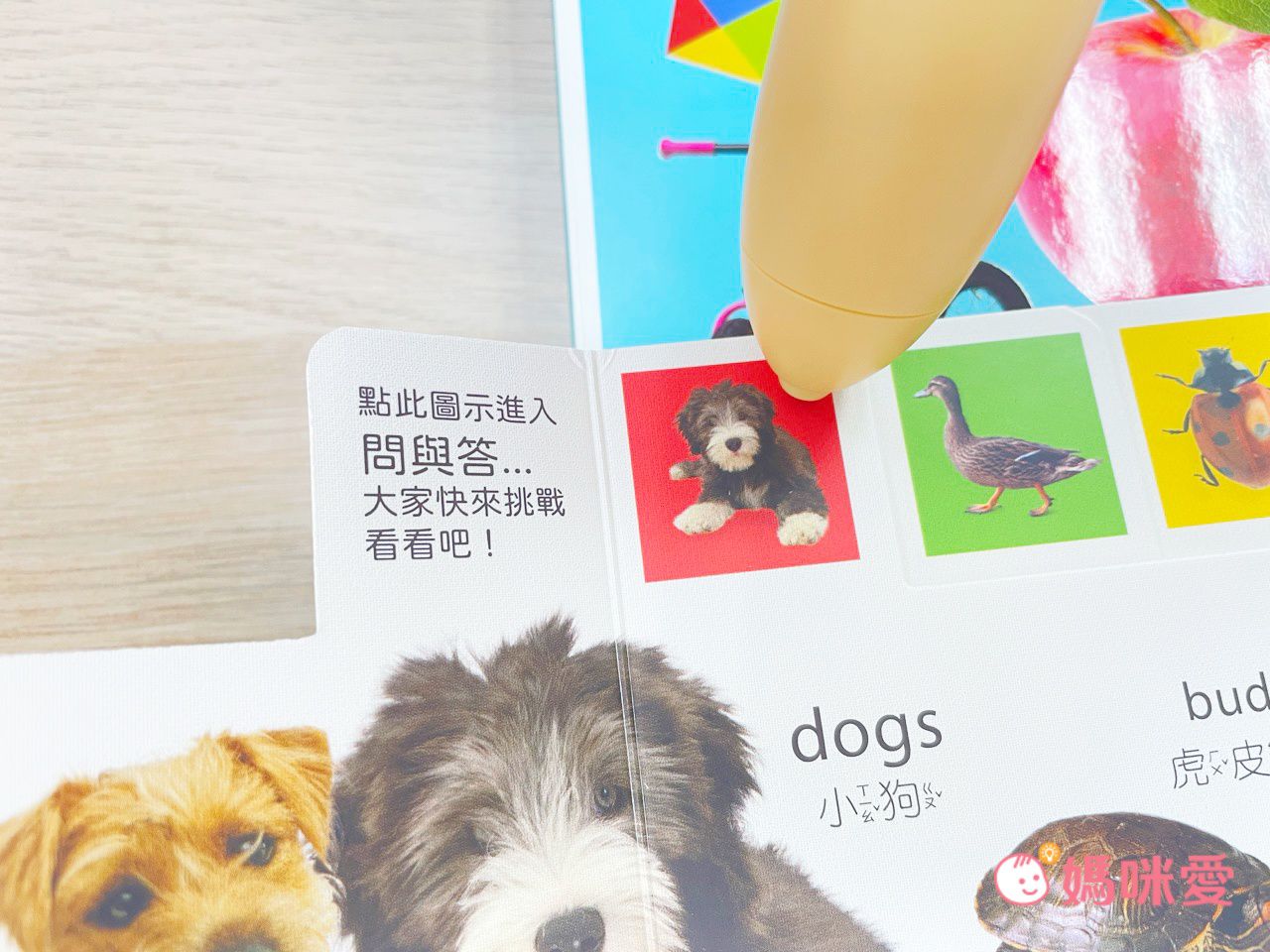 原來邊邊的小圖示就是問與答小遊戲呀,用點讀筆點一下就能進入該頁遊戲體驗!增加學習印象。