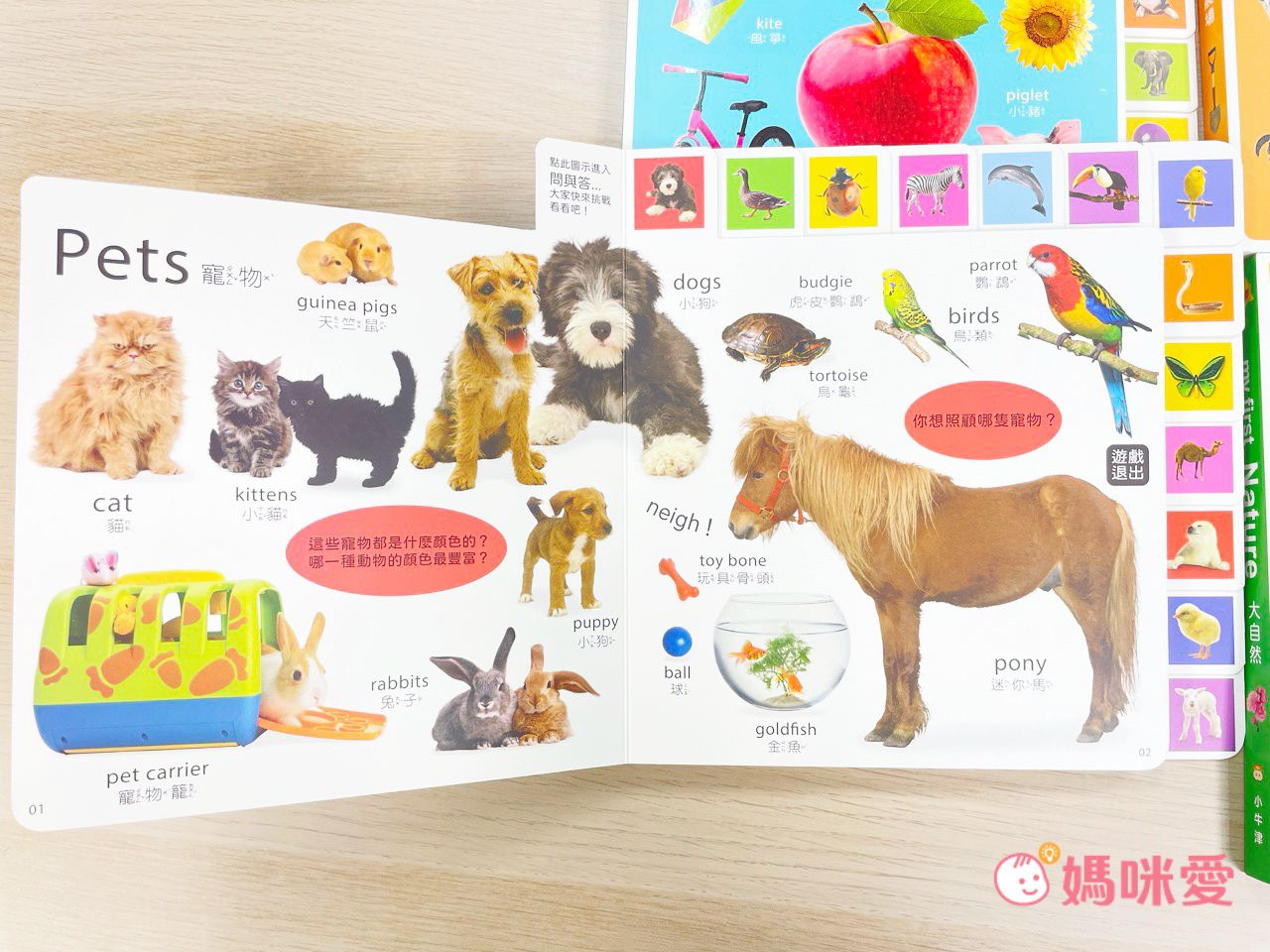 第一頁就好多插圖呀!仔細看發現這是本中美雙語圖解,孩子也能透過點讀跟讀、發音校正,更認識書中所介紹的事物。加上很多精美真實圖像能加深寶貝的視覺印象~